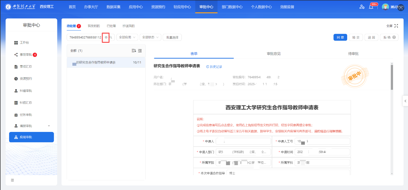 ②【审批人】所申请指导的研究生主导师、所在学科、所在学院负责人对申请人及申请指导的研究生资格进行审定,并通过以下方式完成线上审批: