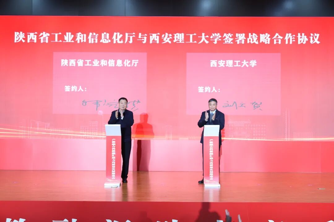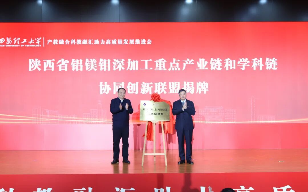 会上,陕西省工业和信息化厅与学校签署战略合作协议。学校牵头组建“陕西省铝镁钼深加工重点产业链和学科链协同创新联盟”,并与36家企业签署共建卓越工程师学院协议。